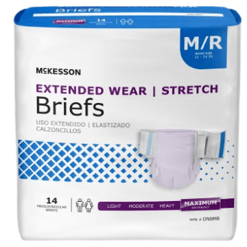Adult Diapers 365 now features these Maximum Stretch Overnight Diapers For Adults With Tabs in sizes Medium or Large/XL. Mckesson Stretch extended wear adult diapers with tabs are designed with super absorbency for night time usage. These briefs have soft, wide flexible hook and loop tabs that can refasten anywhere on the side. With the advanced dual-core this overnight adult incontinence brief with tabs is the best for men or women with heavy urine loss or fecal incontinence. The features are endless from gentle outer leg gathers for extra comfort from incontinence and inner leg cuff for more protection.